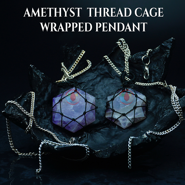 Amethyst Thread Cage Wrapped Pendant