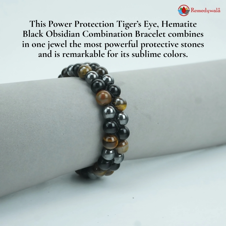 Tiger's Eye, Hematite & Black Obsidian Combination Bracelet Double Layer 8mm